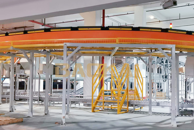 鞋服類大型項目,集成螺旋機,通道機,交叉帶分揀機,提升機等智能設備和寶開BICS信息管理系統,通道機效率達420箱/小時,分揀效率達8000-10000件/小時。