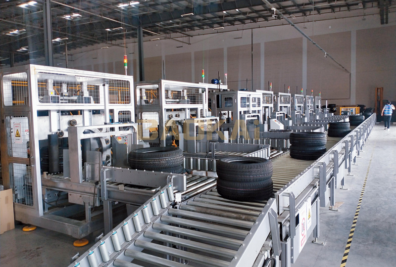 汽配行業(yè)新項目:集成了臥式環(huán)體打包機、輸送線、直角分合流等硬件設備;技術上實現了前置掃描到后置貼標的全程實時跟蹤,一期八臺打包機,可滿足480個輪胎/小時的打包效率,采用的分合流裝置,輸送效率可以滿足未來960個輪胎/小時的分合輸送效率。